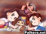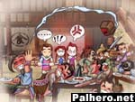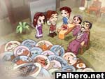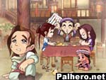料理格斗中有两种赢法,一是KO对手,一是完成料理。如果是短的料理槽,就只需顾食材,如果不是放得太多炸弹的话,对手是必定KO不到你的。如果料理槽是长的话,就只须顾攻击图标,但有一点要注意,不要把镬铲和其他两个合起来一同攻击,因为攻击力会反为减弱。火和炉头则要合起来才会攻击对方,一下镬铲加一下火和炉头的合击就可以KO对方了。打败赵灵儿就可以见到三女出浴图。