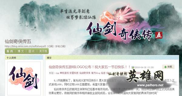 五一前夕,仙剑五官博发布《仙剑奇侠传五》LOGO,同时官博全新改版,使用上有官博LOGO的主题。