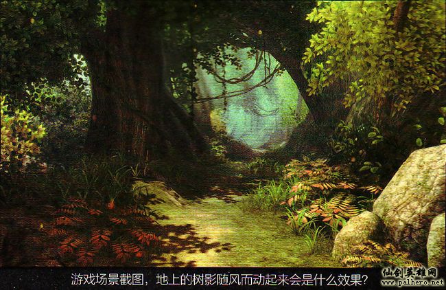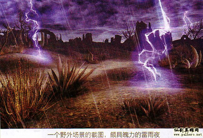 为了能够使“仙剑五”的场景更加生动和真实,昼夜、气候等效果也被广泛使用在各个场景中。随风摇曳的树枝、片片飘落的花瓣、呼啸弥漫的风沙、劈落身边的雷电、纷纷降下的雪花、扭曲空间的热浪,每当一个构思最终实现后,其效果都使我们备感兴奋。而对于PC配置相对不高的玩家来说,虽然可以通过降低相关特效设置的方式来使游戏运行更加流畅,但那终究有些遗憾,我们也希望所有玩家都能体验到最好的游戏画面,因此直到现在程序组的同事依然在为游戏的优化而进行着不断的努力。愿最终能够在运行效率和画面效果上同时为玩家提供满意的成果。