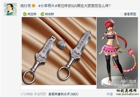 姚仙在微博透露仙剑五周边模型。此次为官方发布仙剑五进行周边设计后第一次有周边设计模型露脸。