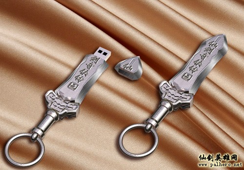 本次周边透露共有两款,一款为剑型U盘。按仙剑五发行代理百游高级副总裁魏啸的介绍,U盘中将带有丰富仙剑视频与游戏花絮资料。