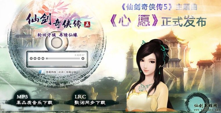 名称:仙剑奇侠传五 主题曲:心愿(MP3+lrc歌词)