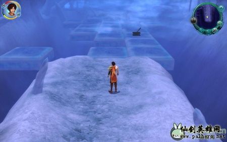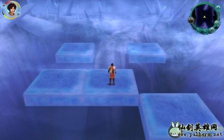 继续往前走,遇到一个简单的迷宫型冰块桥,走错会回到起点,只需耐心一点,无难度。后两个冰块桥需要先拉下桥上的机关再顺利走到对面才可通过。在尽头碰见女鬼凌波,她也在寻找神农鼎。