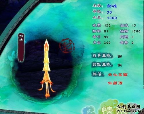 战斗建议:仙术方面,雷ˋ火的40MP的技能建议使用,云凡跟龙幽的普通攻击很有可能一击毙命,这样就封印不到了,剑灵对仙术的防御还满强的,所以可以这样慢慢损他血,雨柔跟小蛮的普公也可以有不错的效果。