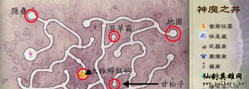 以上,这是我刚刚想到的,提供给大家知道,希望对大家有帮助。对了,刚刚才发现,我满多地方剑魂打成剑灵的…这点小细节就请忽略吧! ! ! (遭打 附上第二次来到神魔之井的地图: 本人习惯每个地图的角落都走 就发现了攻略上没有的宝箱 于是做了这个