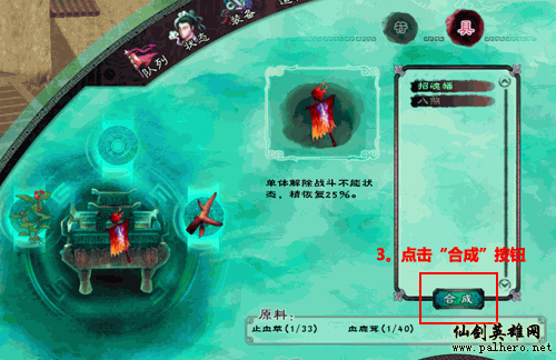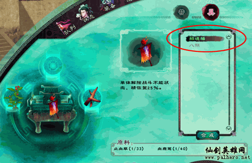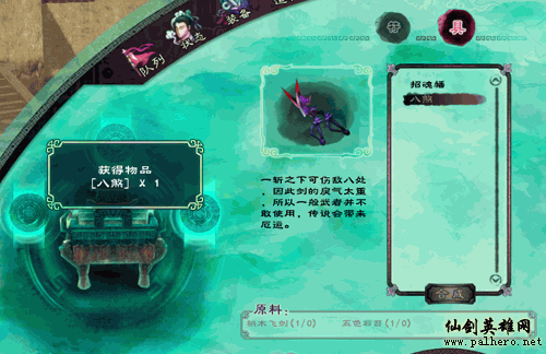 4、此时“八煞”被选中(虽然左侧的图示还是“招魂幡”),鼠标左键点击“合成”按钮。