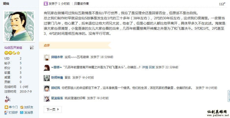 姚仙出面回应平行世界问题 仙剑5发生在仙1约38年后