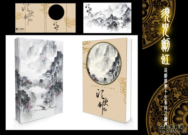 封套:精选水柔古风颜色沙点纸,烫金精致云纹+黑色烫金“须臾剑虹”标题等多个烫金点,中间为圆形镂空,可看到内封的图。