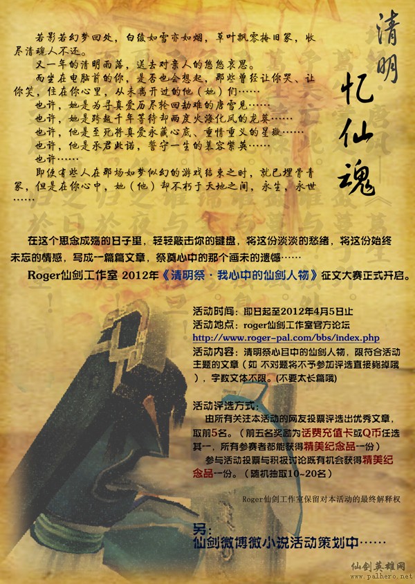 活动地点:roger仙剑工作室官方论坛【清明祭】活动专版