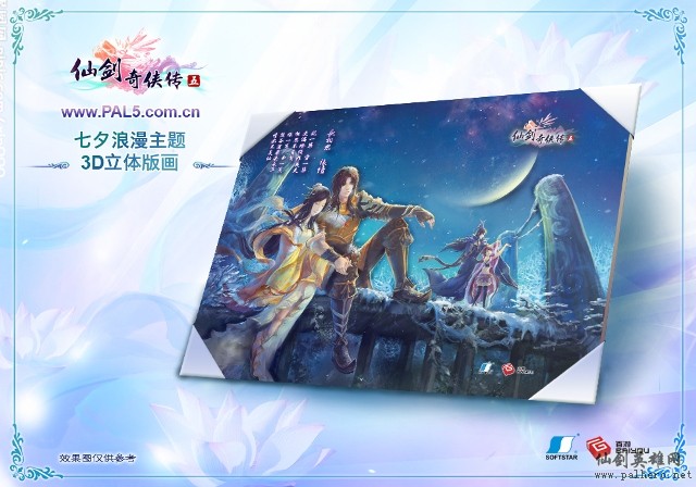 七夕浪漫主题情景画,配合全新3D立体呈现技术。画中两双情侣的相偎相依、唯美的月色异乡风光,通过3D视觉效果展现的淋漓尽致。这个夏天,仙剑与你天涯相伴,共度浪漫七夕。