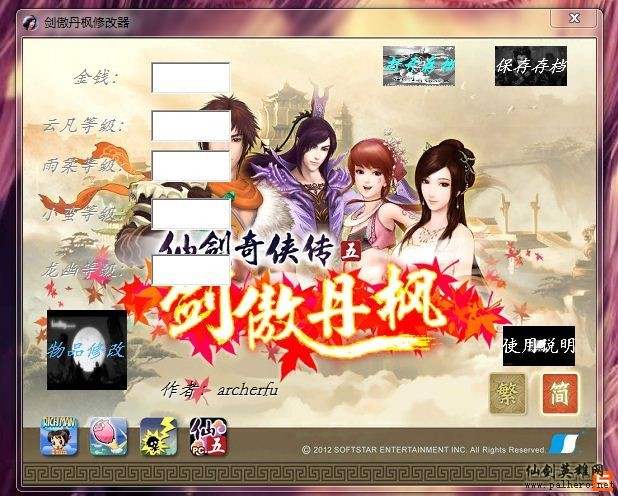 名称:《仙剑奇侠传五 – 剑傲丹枫》存档修改器