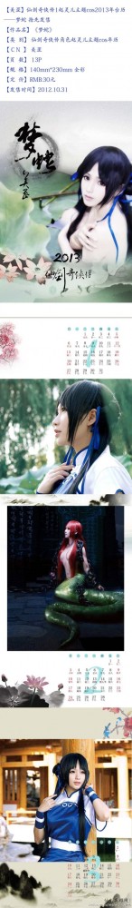 【类 别】 仙剑奇侠传角色赵灵儿主题cos年历