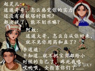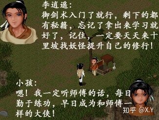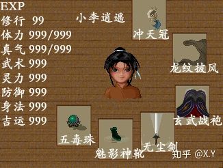 5、在真实RPG游戏中,道具和装备不只是用来使用或装备,也可以用来赠送给NPC,并且往往会造成NPC有不一样的结局。如在回魂仙梦中,把装备道具和武功秘籍给小李逍遥,会对小李逍遥以后的发展,产生巨大的影响: