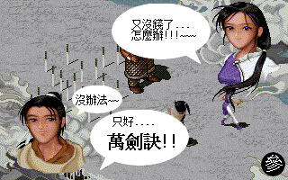 旁白:月圆之夜,紫禁之颠,一剑凄谰,天~~~外~~~飞~~~仙~~~~~~~~~~~ [拜月]:哼,今晚你叫我来,无非是想。。。。 [剑圣]:没错,宝刀未出,却寒气逼人。。。。 [拜月]:剑圣,那要看你躲不躲的过我这招,天~~~~外~~~~~飞~~~~~仙~~~~~~~~~(刷刷刷,删去暴力场面^_^)当! [拜月]:啊,什么人! [逍遥]:什么人敢在皇宫的上面打架,分明是不给我面子嘛! [剑圣]:喂喂喂,小兄弟,给点面子嘛!好歹我也是。。。 [逍遥]:就因为你不是东西,所以我才不给你面子! [拜月]:混帐!我只要一指你就。。。。 [逍遥]:一指是吧!我也会啊!马上趴下,双手放在头上,把你 抓回去,少说也判你个10年8年的牢。。。 [剑圣]:唉,真是丢脸啊!拜月,我们看来今天是会不成了不如,改日再见! (刷的一声,什么鬼影都不见了) [逍遥]:………………