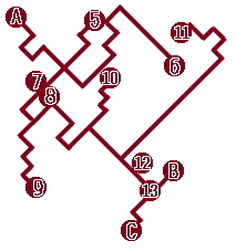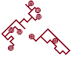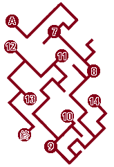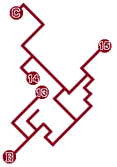 B 往地下通道(二) 13 金刚符 14 神仙茶 15 玄武战袍 C 通往南绍地下王宫 |