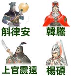 ![]() 古月仙人 ![]() 然翁 ![]() 程咬金 ![]() 秦叔宝 ![]() 宇文拓四部将 |